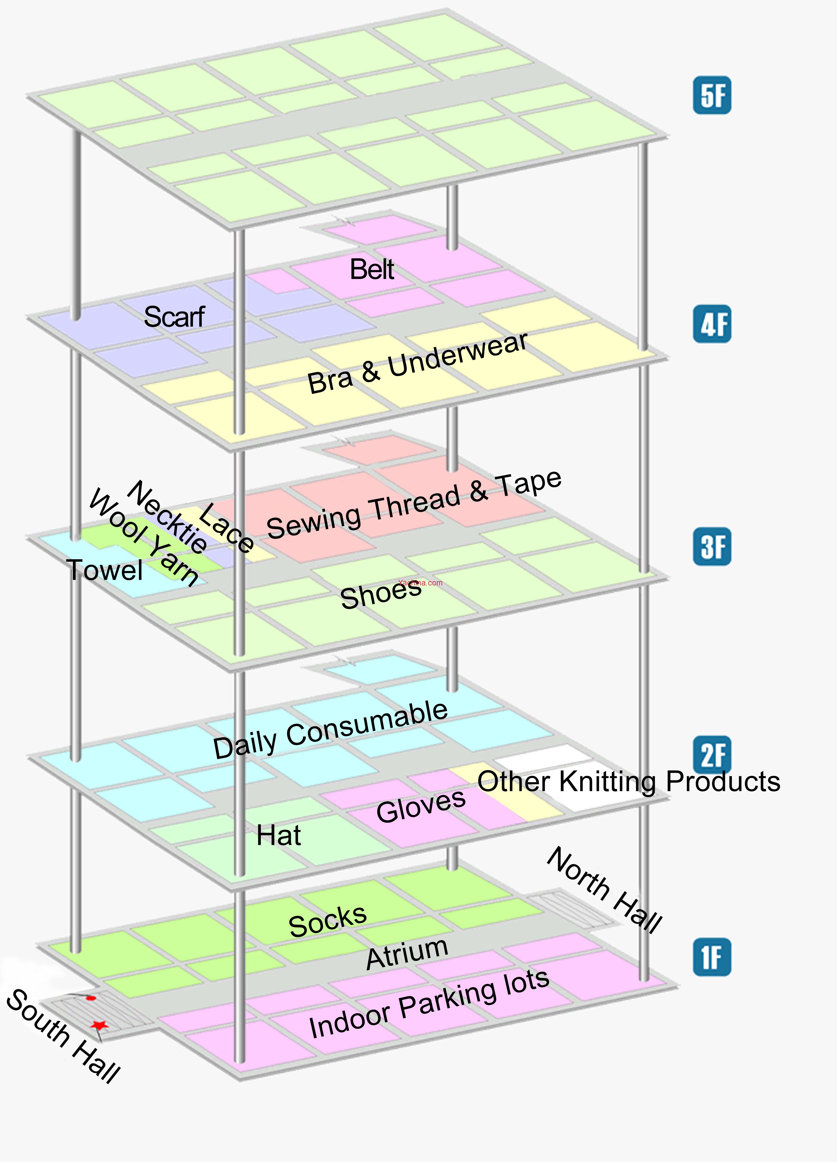 The 1st floor deals in hosiery, the 2nd floor for Daily Necessities, gloves, hats and other needle cotton fabrics, footwear, wool, towels, lace, neckties on the 3rd floor, bra underwear, scarves and straps on the 4th floor. It provides a full range of services including modern logistics, E-business, international trade, financial services, accommodation, etc. The market was equipped with 4D Motion Cinema, tourism shopping and other special commercial services.